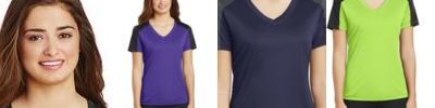 LST354 Ladies PosiCharge ® Competitor ™ Sleeve Blocked V Neck Tee