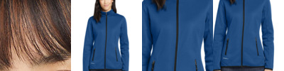 Sophistication meets great weather protection in this sleek, technical soft shell. A durable water-repellent (DWR) finish sheds rain and stretch adds easy mobility.