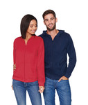 60% combed ring-spun cotton/40% polyester sueded jersey • 4.3 oz. • 32 singles • unisex fit • unlined hood • dyed-to-match YKK zipper • 1x1 ribbed cuffs and waistband • tear-away label • Sizes: XS-3XL