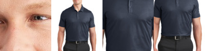 An allover embossed tonal tri-blade pattern gives this polo a sophisticated edge while Dri-FIT moisture management technology delivers breathable performance. Design features include a self-fabric collar, three-button placket and open hem sleeves. A contrast heat transfer Swoosh design trademark is on the left sleeve. Made of 5.29-ounce, 100% polyester Dri-FIT fabric.