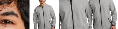 With a unique and rugged texture, this jacket shows real grit. Heavy gauge knit, an embossed lining and understated details give it a sharp take on utility and comfort. 12.4-ounce, 100% poly knit bonded to 100% poly brushed-back fleece Zip-through cadet collar OGIO heat transfer label for tag-free comfort OGIO locker loop Embossed lining with subtle O pattern Reverse coil zipper with OGIO zipper pull Embroidered O on front and back Front zippered pockets Open cuffs and hem
