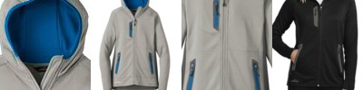 This sporty midweight jacket pairs smooth-faced fleece with stretch side panels for comfort during active adventures. Three-panel hood with contrast lining. Reverse coil zippers, welded zippered contrast pockets. Contrast Eddie Bauer heat transfer logo on right hem. Made of 12.8-ounce, 100% polyester diamond dobby fleece with an anti-pill finish inside. 88/12 poly/spandex side panels.