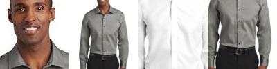 Thoroughly updated, this crisp nailhead shirt has a silky feel and a wrinkle-resistant finish for exceptional non-iron performance. 4-ounce, 60/40 cotton/polyester with pucker-free taped seams and RH engraved buttons to elevate the office-ready look. Open collar, covered placket. Front and back darts. Two-button cuffs.