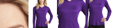 This lightweight hooded pullover locks in color and wicks moisture. Itÿs versatile enough for year-round wear.