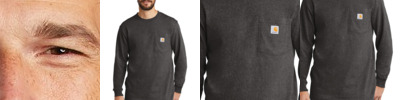 Wear it as a layer. Wear it by itself. Wear it with pride. It's as rugged and dependable as your favorite hammer. Durable 6.75-ounce, 100% cotton jersey knit 90/10 cotton/poly (Heather Grey) 60/40 cotton/poly (Carbon Heather, Brite Lime, Brite Orange) Rib knit crewneck and cuffs Tagless neck label Left chest pocket Side-seamed construction minimizes twisting Carhartt label sewn on left chest pocket Loose fit