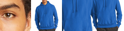 12-ounce, 82/18 U.S. grown cotton/poly fleece 77/23 cotton/poly (Oxford Grey) 66/34 cotton/poly (Charcoal Heather) 82/18 cotton/poly (Ash) Reverse Weave cross-grain cut resists shrinkage Two-ply hood with dyed-to-match drawcords 1x1 rib knit side panels, sleeve cuffs and hem Front pouch pocket Embroidered Champion C logo at left cuff Woven back neck label