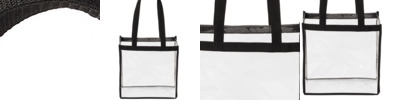 This see-through tote meets the policies for stadiums, concerts and events that allow clear bags. Clear PVC Polyester webbing handles and trim Dimensions: 11.75'h x 11.75'w x 5.75'd; Approx. 794 cubic inches Note: Bags not intended for use by children 12 and under.