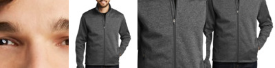 With a unique and rugged texture, this jacket shows real grit. Heavy gauge knit, an embossed lining and understated details give it a sharp take on utility and comfort. 12.4-ounce, 100% poly knit bonded to 100% poly brushed-back fleece Zip-through cadet collar OGIO heat transfer label for tag-free comfort OGIO locker loop Embossed lining with subtle O pattern Reverse coil zipper with OGIO zipper pull Embroidered O on front and back Front zippered pockets Open cuffs and hem