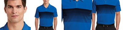 With contrasting printed stripes, this lightweight polo offers exceptional comfort thanks to Dri-FIT moisture management technology and underarm gussets. Design details include a self-fabric collar, two-button placket with dyed-to-match buttons and open hem sleeves. A contrast heat transfer Swoosh design trademark is on the left sleeve. Made of 4.3-ounce, 100% polyester Dri-FIT fabric.