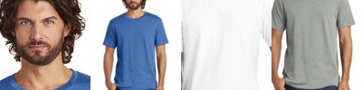 The perfect mixture of softness, comfort and easy wear. 4.5-ounce (153 GSM) 50/25/25 polyester/combed ring spun cotton/rayon, 32 singles Tear-away label Back neck tape 1x1 rib knit neck and arm holes Curved hem Tri-Blend fabric infuses each garment with unique character. Please allow for slight color variations. Due to the heat sensitivity of tri-blend fabrics, special care must be taken throughout the printing process. Consult your decorator or ink supplier for best printing practices.