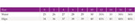 | Bust | 32-33 | 34-35 | 36-37 | 38-40 | 41-43 | 44-46 | 47-49 | 50-52 |